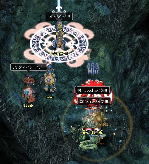 途中でほかのPTがボスと戦っているところに遭遇、結構つらそうだった。7人PTだったと思うけどリストア連発。