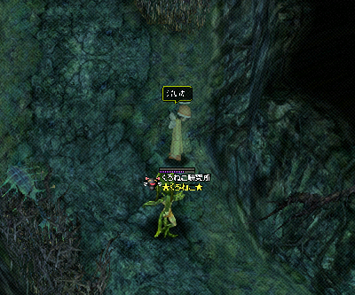で、もーダメってぐちい増えたときに来た方向に二人で逃げたんだけど、織部さんが浮きそうだったから反撃する方がいいかなって、回復を飲みながら逃げていたところを立ち止まったら、あれ?織部さん居ない...あっ、くろねこ浮いちゃった‥.ハミして逃げ切ったのかなって思ったんだけど...よ~~~く見ると、PTのHP表示ゲージがOだったんでふたりとも仲良く浮いてたんだね。(後で聞いたところによると、置くに行ったのは、奥でバインしてくろねこを助けようとしてくれたらしい。)